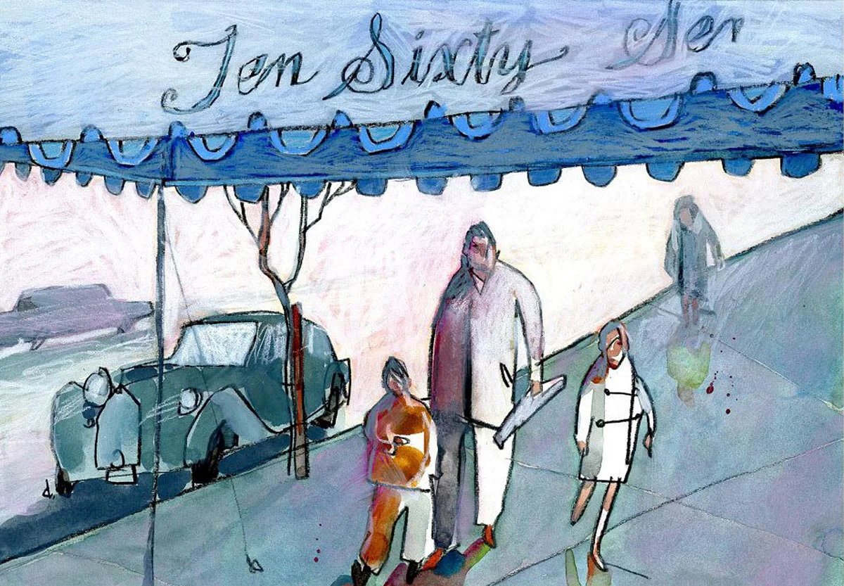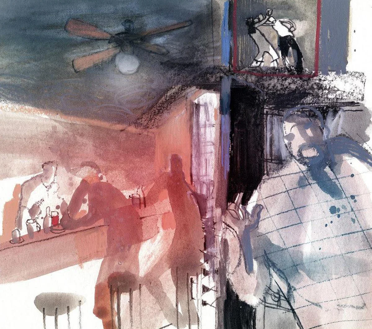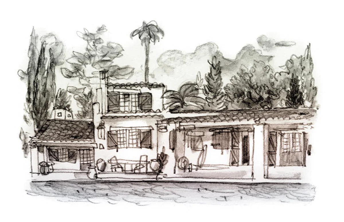 J’ai par exemple esquissé l’entrée d’une maison lors d’un voyage à Lisbonne. Je m’assieds à la terrasse d’un café. Deux frères servent les clients. Ils semblent être les propriétaires des lieux. Leur âge canonique laisse imaginer qu’ils ont dépassé depuis longtemps celui de la pension, mais que leur vie est là, que leur travail et leur vie ne font qu’un, que leur plaisir est de côtoyer leurs fidèles clients devenus des amis au fil du temps, et qu’ils ont peu d’intérêt pour les gens de passage, comme moi.