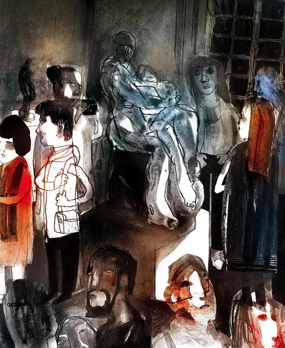 Un des touristes regarde mon dessin, me dit qu’il aimerait beaucoup savoir dessiner. Son fils, lui, a du talent ! L’année prochaine, il veut l’inscrire dans une école d’art. Ils habitent Bordeaux, mais avant ils vivaient à Paris. Son fils serait bien resté, il y avait ses amis. Mais trop de bruit, trop de stress, il avait besoin de calme, il devait changer…