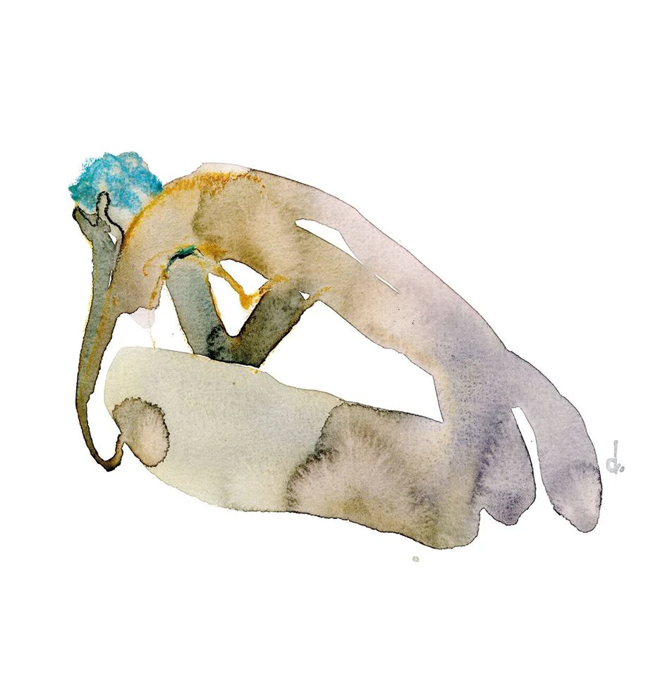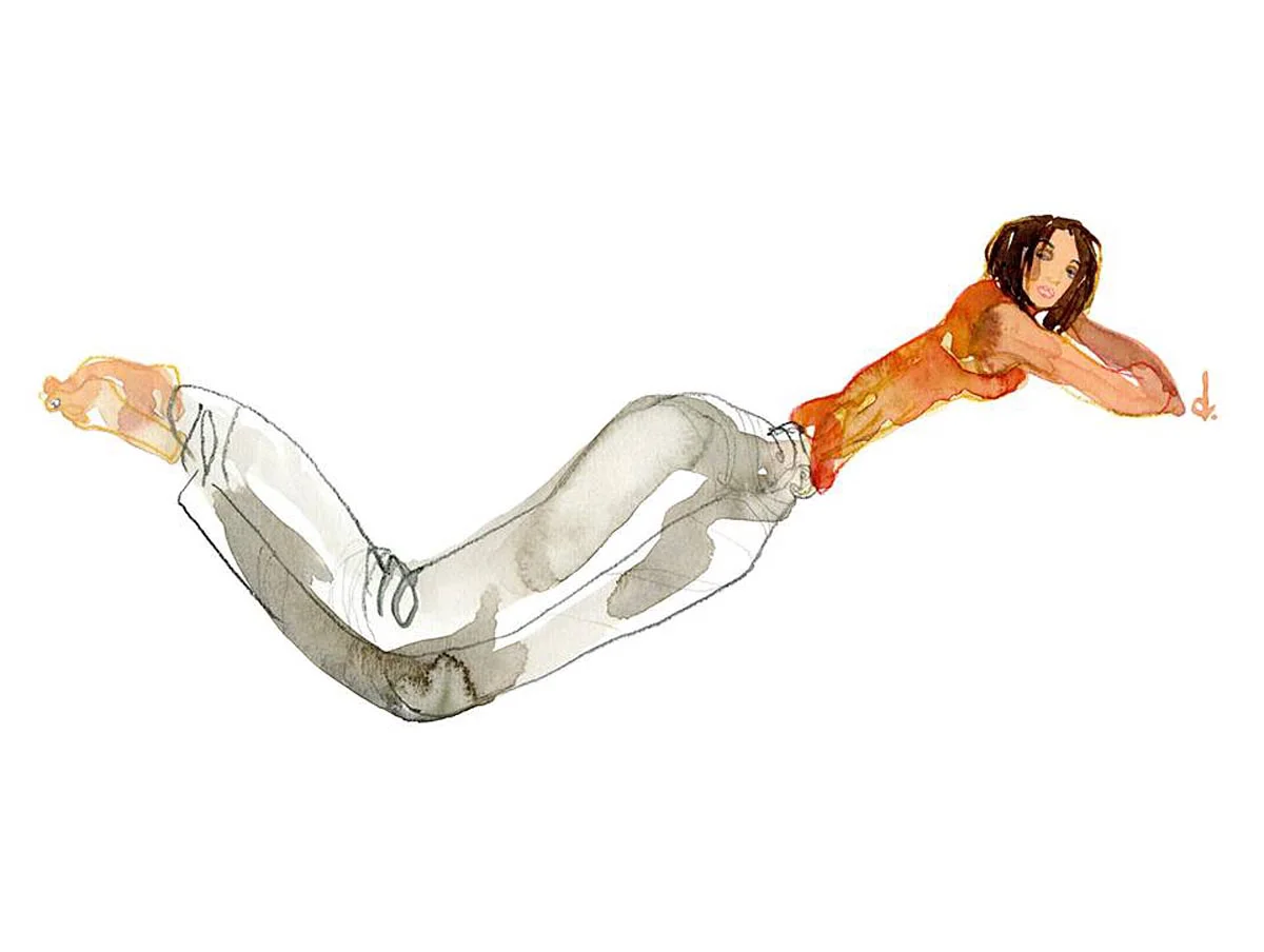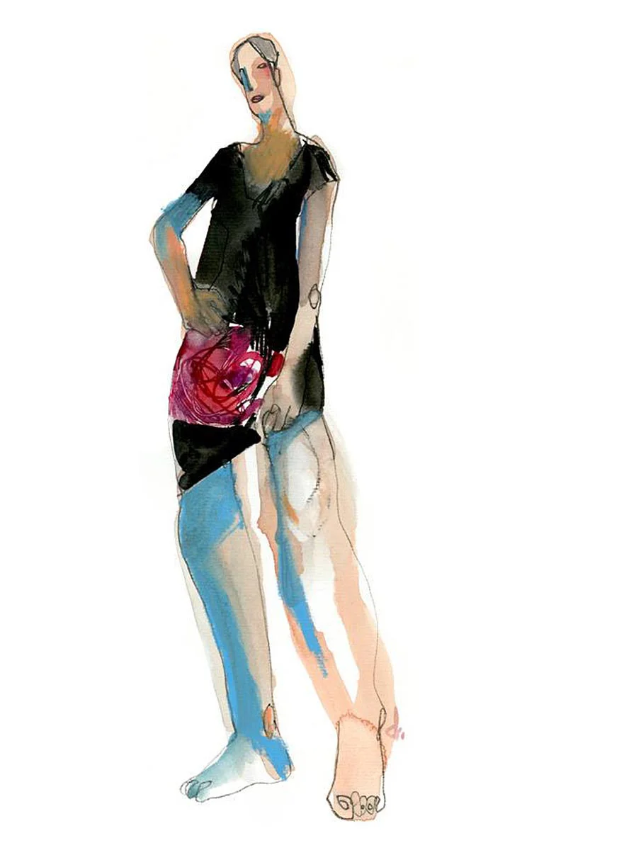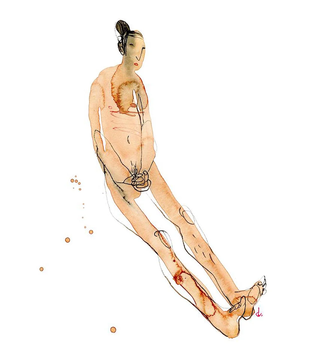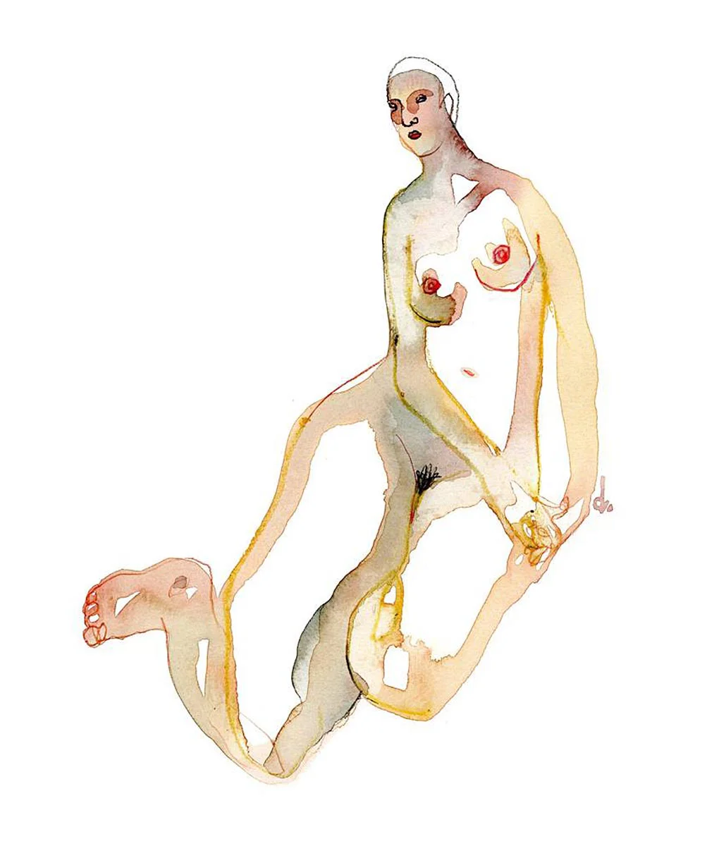 L’idée première est de faire mes gammes comme le ferait un musicien. En réalité, cela va plus loin que le simple exercice. À ce moment de la journée, ma main peut enfin se libérer des contraintes du travail de commande. Je la laisse s’exprimer, l’invitant à lâcher prise, à glisser vers l’inconnu en oubliant les règles élémentaires du dessin, comme le respect des proportions ou l’observation de la lumière. Les courbes du modèle sont prétextes à réinventer les formes. Je m’éloigne de la réalité, laissant mon pinceau allonger les corps, rapetisser les têtes, modulant le jeu du trait et des masses.