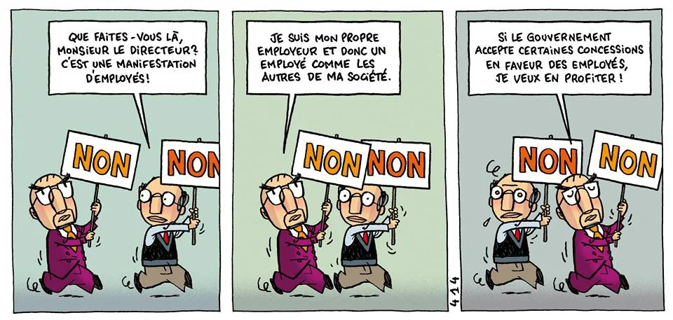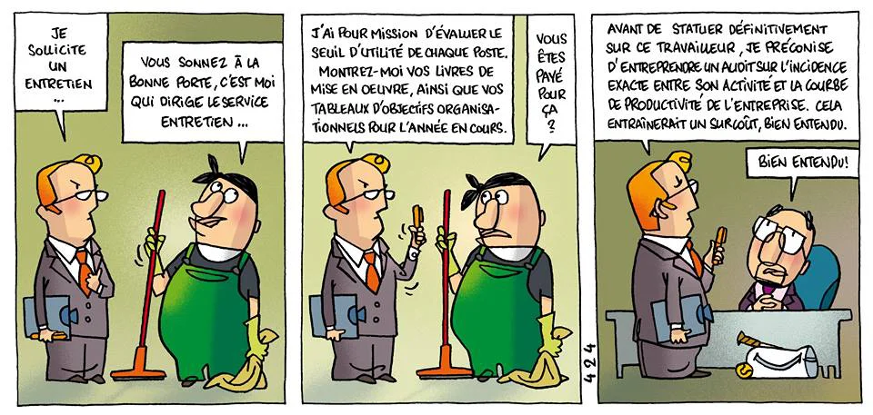 « Manager Mode d’emploi » dresse à coups de strips incisifs, le portrait d’une entreprise dont le directeur est aussi stupide, veule et incompétent que cynique et impitoyable avec ses employés. Dans cette petite société, la bonne marche de l’entreprise importe peu. Le patron est plus préoccupé par sa grande passion, le tennis, qu’il suit avec passion, et par le fait que chacun reste à sa place. Dans cette société aux mœurs figées, on reproduit le modèle parental, qu’il soit celui d’un patron ou celui d’un employé. Le directeur poursuit de ses assiduités sa secrétaire et motive ses troupes en parlant de licenciement. Le directeur des ressources humaines est un éloge incarné de la paresse, bref, la vie d’un groupe. Tout, sauf du travail.